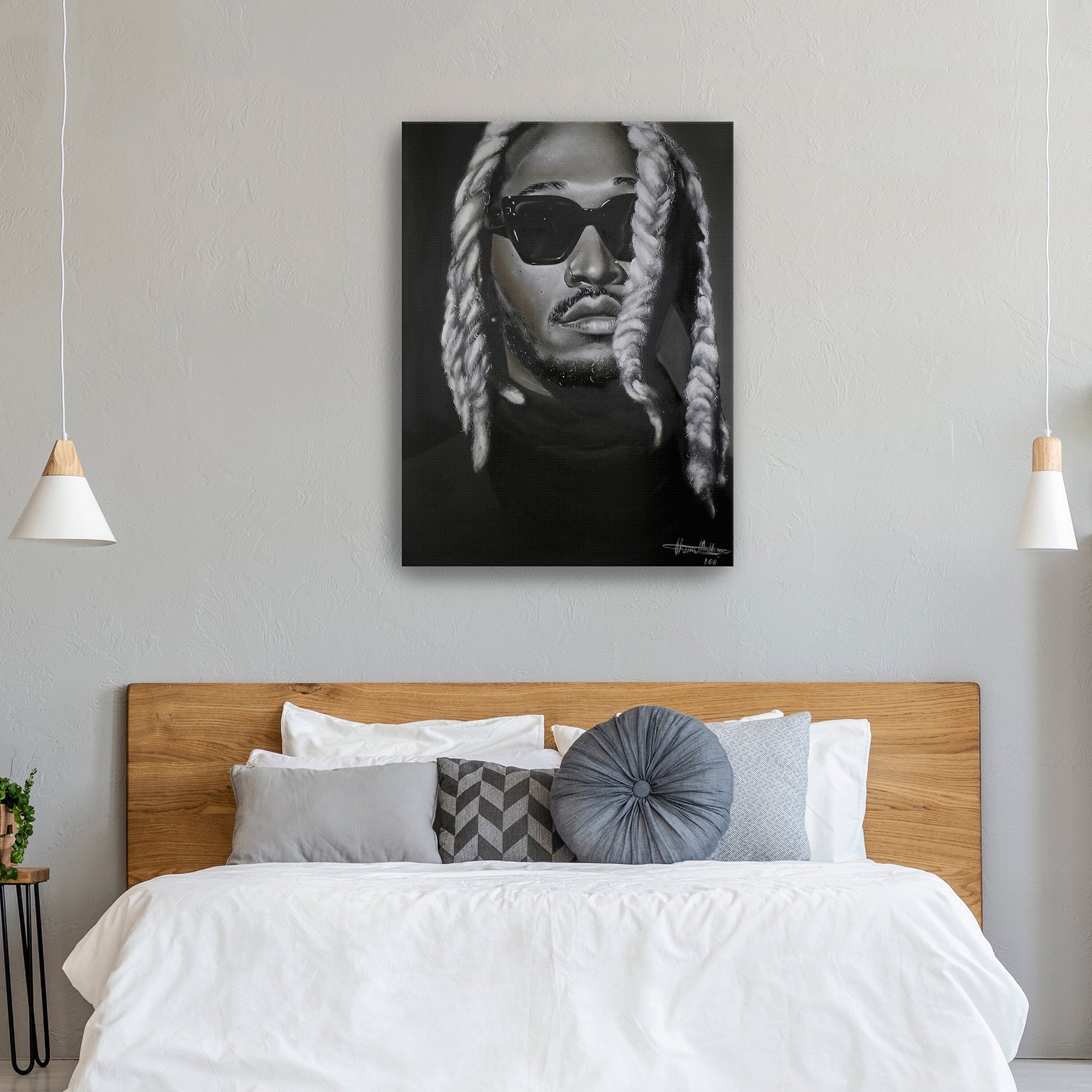 The BLWCK Series is an exploration of light, shadow, and the stories that exist within them. By stripping away color, each portrait draws attention to raw emotion, form, and the silent energy of its subject. These paintings highlight individuals whose presence—whether through their art, influence, or essence—has left a lasting impression. The contrast between darkness and light mirrors the depth of their impact, creating a collection that is both visually striking and deeply evocative.